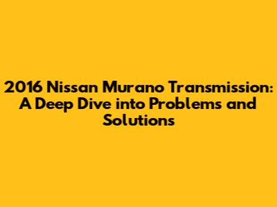 2016 Nissan Murano Transmission: Issues & Fixes