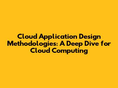 Cloud App Design: Methodologies For Cloud Computing