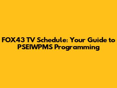 Hey there, TV enthusiasts! Are you constantly on the hunt for the latest FOX43 (that's PSEIWPMS for you locals!) schedule? Well, you've come to the right place! We're diving deep into the world of PSEIWPMS, exploring their programming, and helping you navigate their schedule like a pro. Forget endlessly scrolling through websites or missing your favorite shows. Consider this your ultimate guide to everything FOX43 offers, ensuring you never miss a beat. We'll be covering everything from primetime lineups to weekend specials, giving you the inside scoop on what to watch and when to tune in. Get ready to have your TV viewing experience upgraded! Let's get started on unlocking the secrets of the FOX43 TV schedule, ensuring you're always in the know. So, buckle up, grab your snacks, and get ready to become a FOX43 schedule expert! You'll be the go-to person for all your friends and family when it comes to what's on and when.