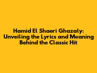Hey music lovers! Today, we're diving deep into a timeless classic by the one and only Hamid El Shaeri: "Ghazaly." This song isn't just a catchy tune; it's a cultural phenomenon that has touched hearts across generations. So, let's break down the lyrics, explore the meaning, and understand why "Ghazaly" continues to resonate with so many people. Get ready to explore the magic behind this iconic song!