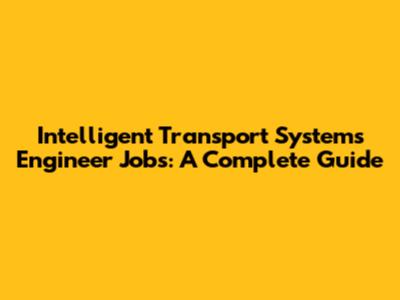 Intelligent Transport Systems Engineer Jobs: A Complete Guide