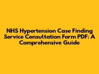 First off, why is hypertension case finding such a big deal? Hypertension, or high blood pressure, is a major risk factor for serious health problems like heart disease, stroke, kidney failure, and even dementia. The kicker? Many people don't even know they have it because it often shows no symptoms. This is where case finding services, supported by forms like the NHS hypertension case finding service consultation form PDF, come into play. These services are designed to proactively identify individuals with undiagnosed or poorly controlled hypertension within the community. Think of it as a public health detective mission – searching for a hidden threat to people's well-being. By making it easier for healthcare providers to systematically screen patients and document their findings, these forms become indispensable. They ensure that no stone is left unturned in the quest to detect this pervasive condition early. Early detection leads to timely intervention, which can significantly reduce the risk of these devastating complications. It's about saving lives and improving the quality of life for countless individuals. The NHS, recognizing this critical need, has put in place frameworks and tools, like this specific consultation form, to empower healthcare professionals in this vital undertaking. It's a testament to their commitment to preventative healthcare and proactive patient management. So, when we talk about the form, remember it's a gateway to preventing major health crises. It's a practical application of public health strategy, directly impacting the health outcomes of the population. The systematic approach facilitated by such forms ensures consistency and thoroughness in the screening process, making it a cornerstone of effective hypertension management programs. Without these structured tools, case finding efforts could be fragmented and less effective, leaving many at risk without knowing it. This underlines the absolute necessity of understanding and utilizing these forms correctly.