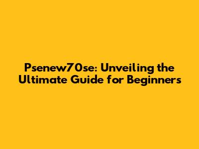 Psenew70se: Unveiling the Ultimate Guide for Beginners