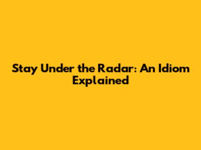 Stay Under The Radar: An Idiom Explained
