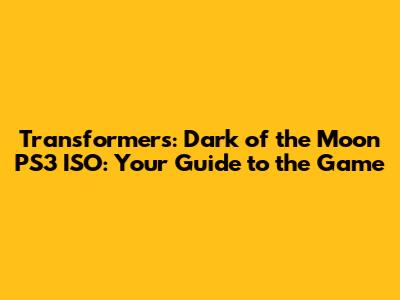 Hey gamers! Are you ready to dive back into the explosive world of Transformers: Dark of the Moon? If you're a PlayStation 3 (PS3) enthusiast like me, you're probably on the hunt for a way to experience this epic game. Well, you're in the right place! We're going to explore how you can get your hands on the Transformers: Dark of the Moon PS3 ISO and what you need to know to make it happen. I'll cover everything from what an ISO is, the legalities of playing these games, and tips to ensure a smooth gaming experience. Let's transform and roll out!