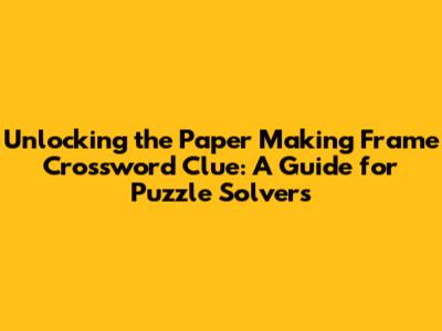 By following these strategies and expanding your knowledge of papermaking terminology, you'll be well-equipped to tackle any crossword clue related to the paper making frame. So, go forth, conquer those puzzles, and have fun doing it! Remember that the key is to understand the language, the terminology, and the context of the clues. With a little bit of knowledge and a lot of persistence, you'll be solving crosswords like a pro in no time.