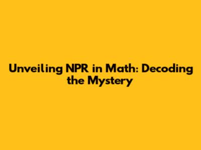Hey guys, ever stumbled upon the acronym "NPR" in the realm of math and scratched your head? You're not alone! It's a term that can pop up, and understanding its meaning is key to unlocking certain mathematical concepts. So, let's dive in and demystify what NPR stands for in math. We'll break it down, make it super clear, and hopefully, by the end of this, you'll be able to confidently say, "Aha! I get it!" This exploration will touch on the basics, explore some common applications, and even offer a few real-world examples to make it all stick.