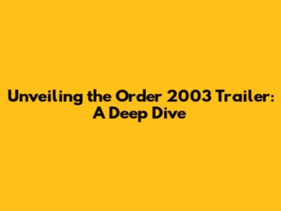 Unveiling The Order 2003 Trailer: A Deep Dive
